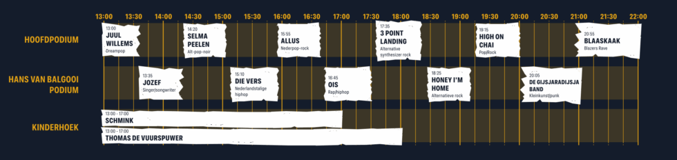 Check wanneer jouw favoriete artiest speelt, waar je de schminkhoek vindt, of hoe je vuurspuwende actie perfect kunt combineren met dansbare live-acts. Van het grote podium tot het kleinste hoekje van het park: alles staat nu strak in de planning.